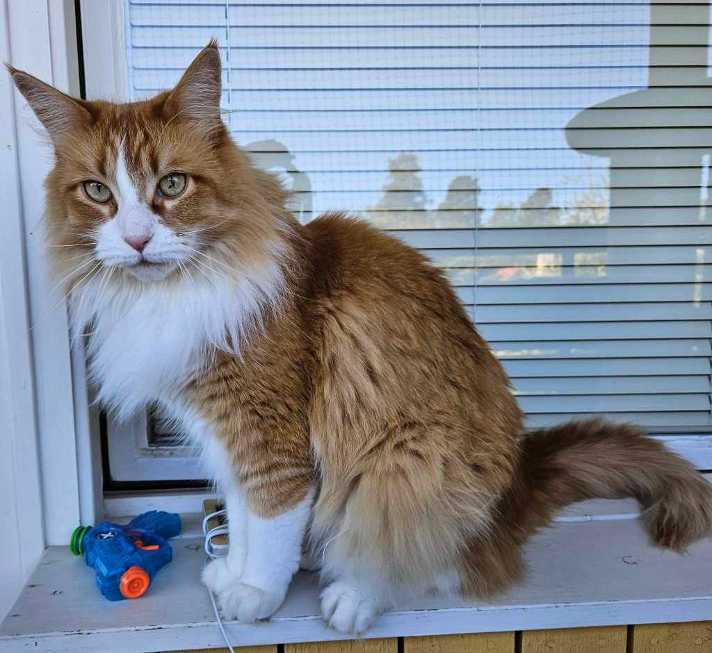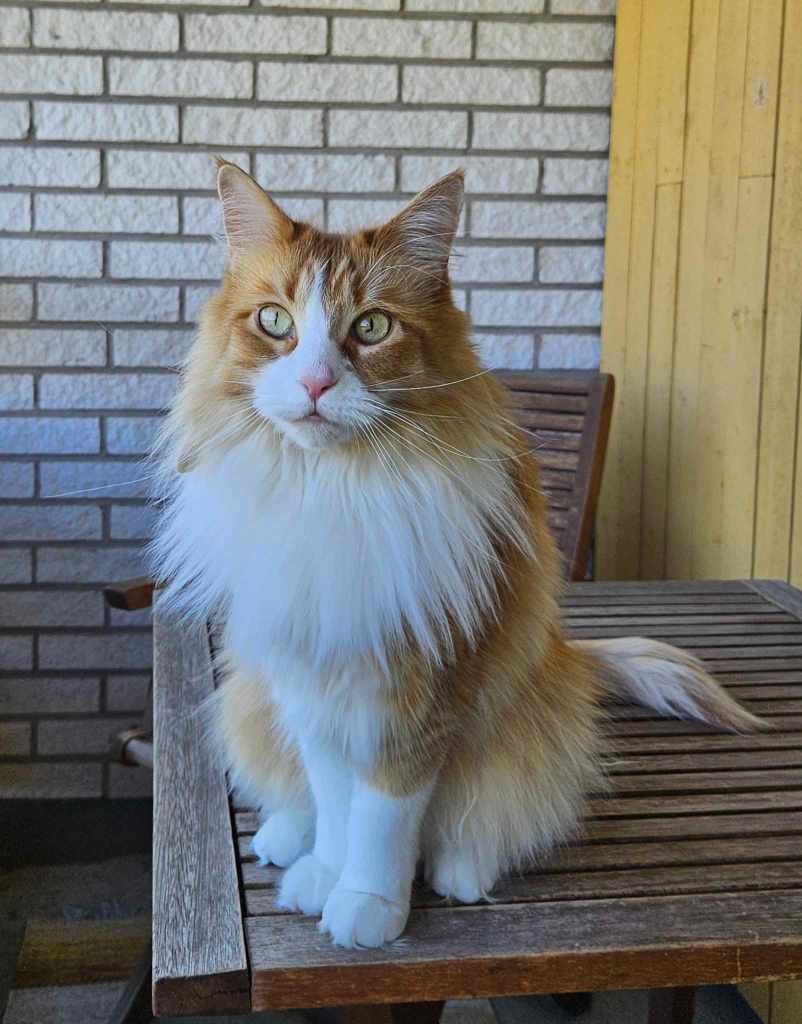 Efter hon blev kastrerad (i vintras) börjar hon nu få en fluffig och fin päls. Väldigt lättskött och silkig sån.